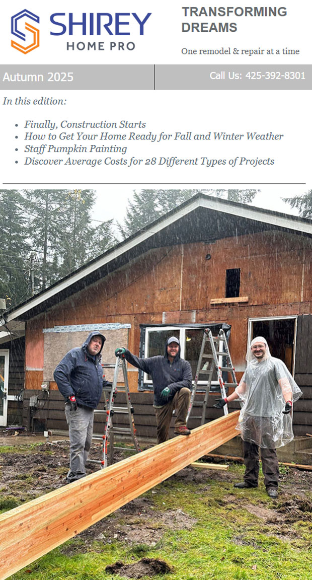 Winter 2021 - Plus 6 ways to spot water drainage issues, how we execute a remodel, and more. In this edition you will learn 5 ideas for creating kid friendly spaces in your home, 6 ways to spot water drainage issues, how we execute a remodel, 3 ways to request quote/service, and get a recent customer testimonial and more.