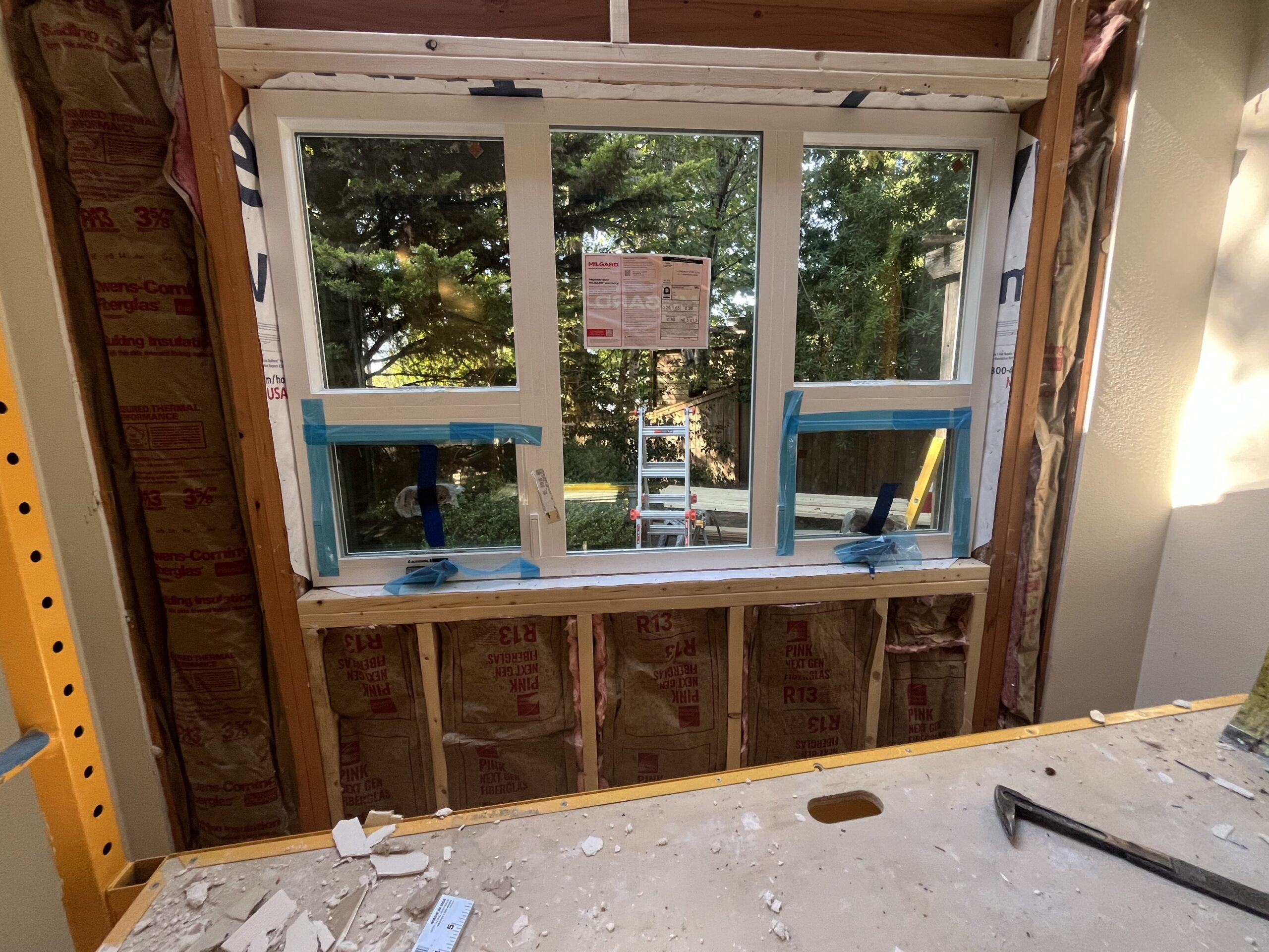 Skywalls are a window system that includes overhead glass and a window. They look great but are prone to leaks/failure. This can be caused by age, improper installation, improper maintenance, extreme weather events, or a combination of these factors. This can be a costly fix. In Glen’s case, the skywall leaks would require a new window, siding, drywall, and painting in the dining area. When demoing the siding, we happened to find even more Christmas critters! This time, they were less cute and didn’t give warning hisses —just stings. Edgar was stung by hornets. It was decided it would be better to wait for exterminators (and for Edgar to heal).